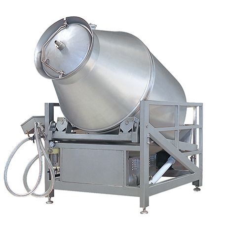 ● 完善的加料和卸料解決方案。擺動(dòng)的滾揉桶支架,使桶前傾,可徹底卸料??梢愿鶕?jù)不同的產(chǎn)品特點(diǎn)選擇真空吸料或者一體化的上料機(jī)構(gòu)裝料。專門配置輔料真空吸管。